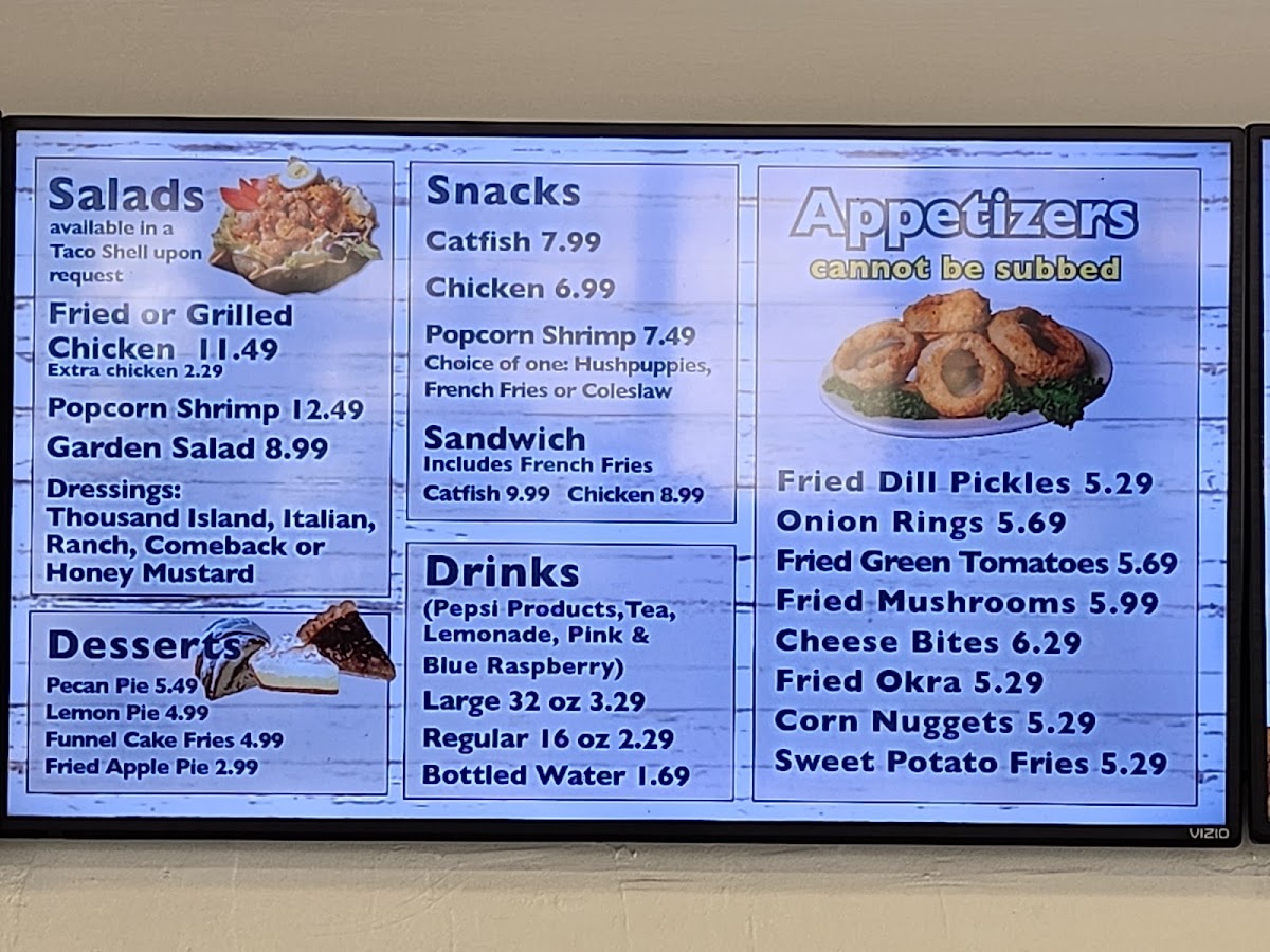 Whether you're in the mood for a crunchy Popcorn Shrimp Salad or a classic Catfish Sandwich, there's something to tantalize every palate. Patrons rave about the food's freshness, with highlights including the acclaimed catfish, described as 'amazing' by satisfied customers.